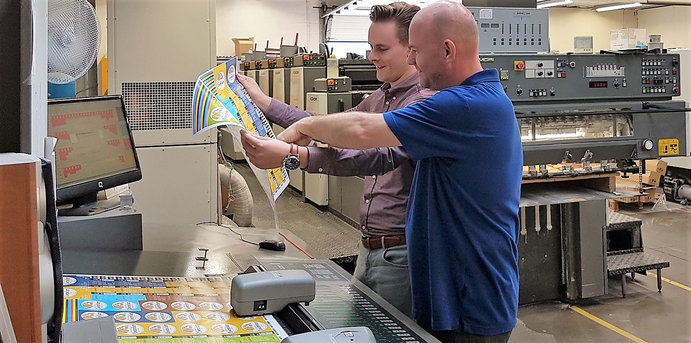 Er zit flinke groei in de markt van bijzondere biertjes. En daarbij heb je etiketten nodig. Het liefst onderscheidende etiketten. En, zo blijkt tijdens het gesprek in Cuijk met Melchior en zijn vader, directeur/eigenaar René Bos, het is nog helemaal niet zo simpel om even een etiketje te bestellen. Ja, je kunt wel zomaar iets bestellen, maar de kans dat het in het proces (of erna) fout gaat, is groot. ‘Wij organiseren voor die startende brouwer vaak een rondetafelgesprek met relaties uit diverse hoeken,’ zegt René. ‘In één ochtend of middag zet je samen de wensen en mogelijkheden op een rij; de flessoort, het etiketmateriaal, de wijze van etiketteren en niet te onderschatten zaken als de lijmsoort. Een investering die zich altijd terugbetaalt.’